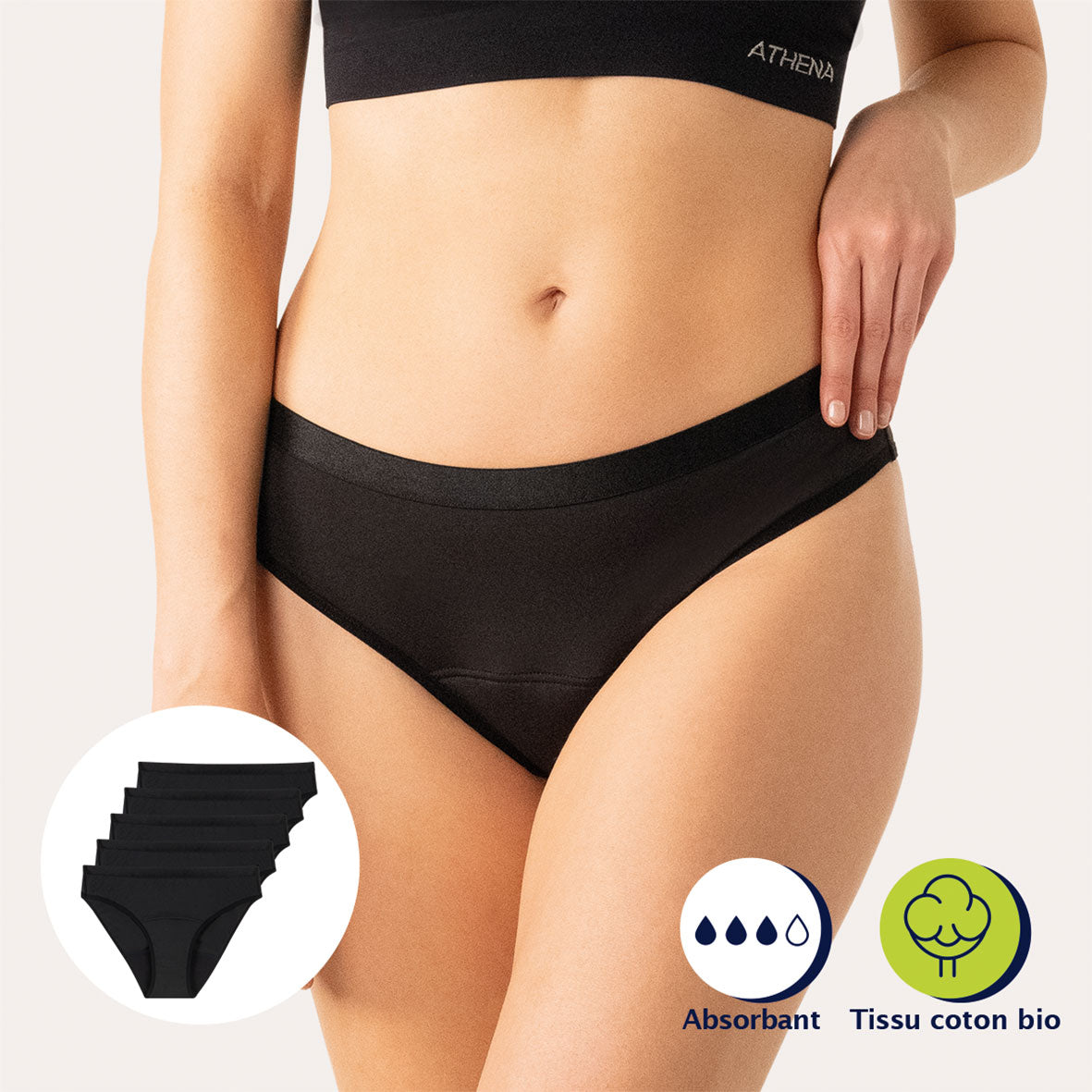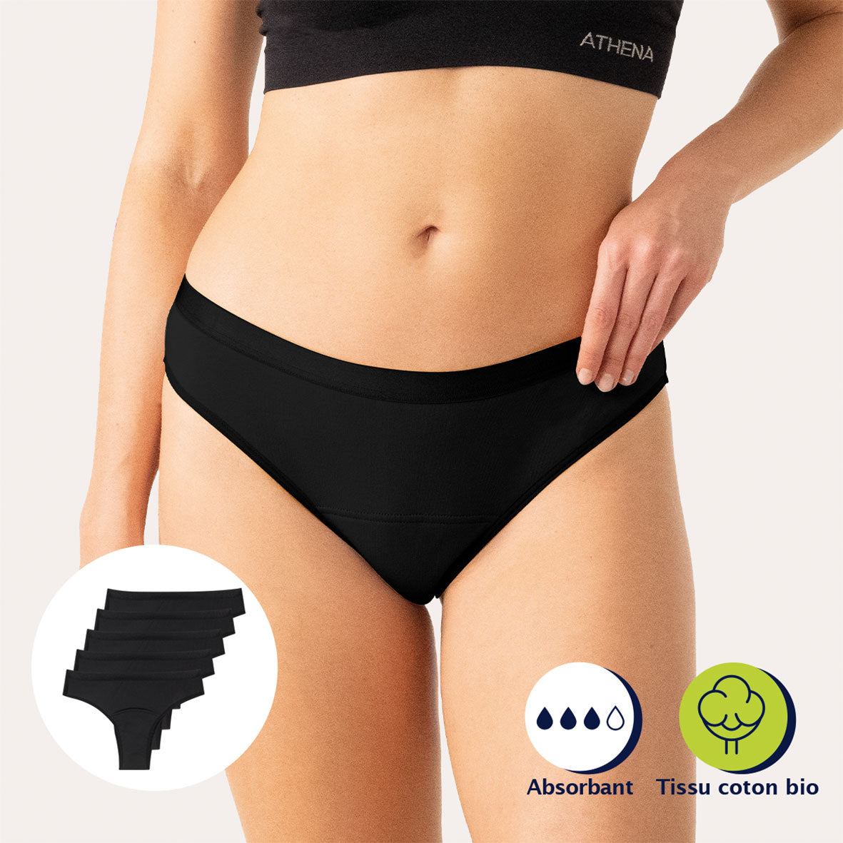 Lot de 5 culottes menstruelles femme Athena