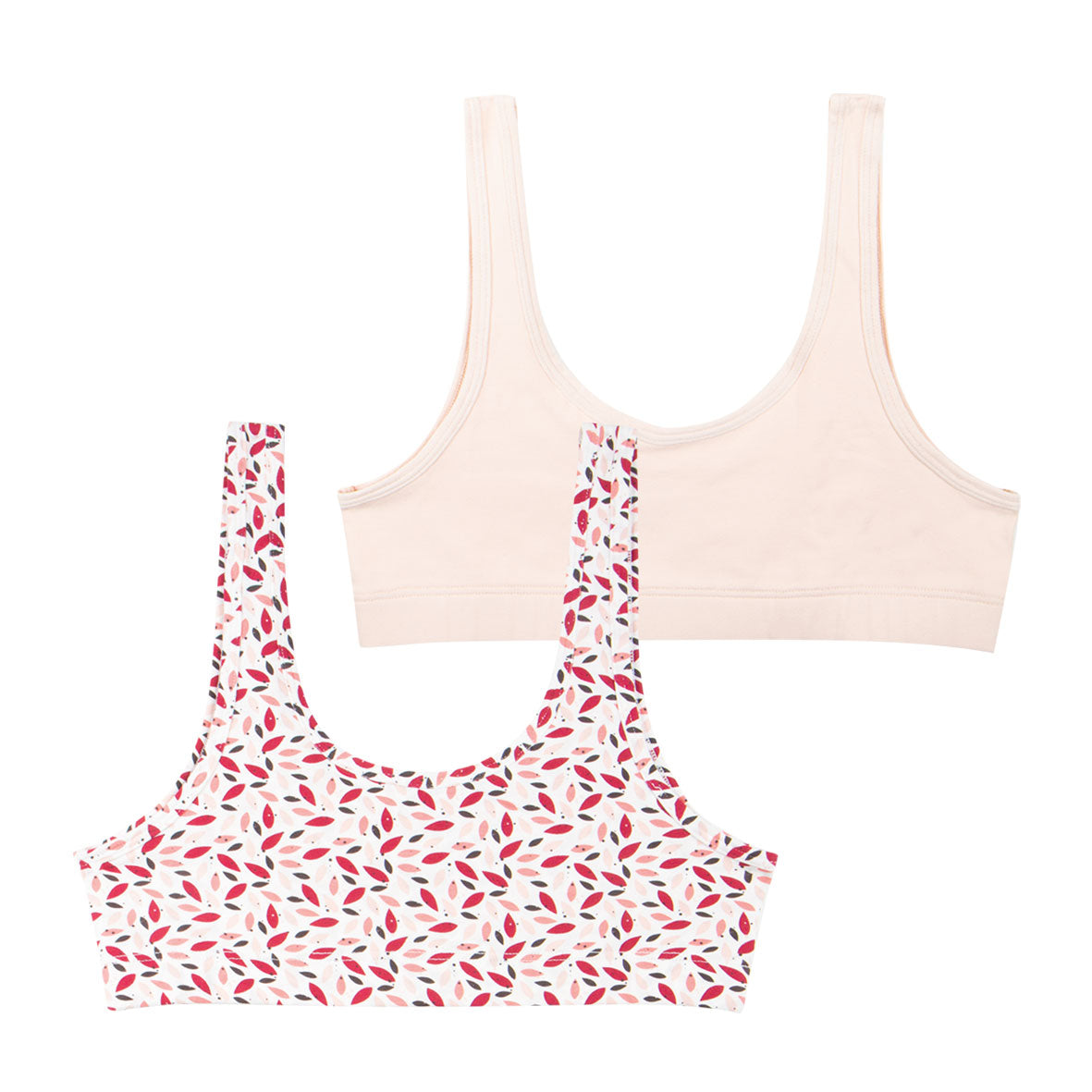 Lot de 2 brassières rose poudré et imprimé floral en coton élasthanne pour fille