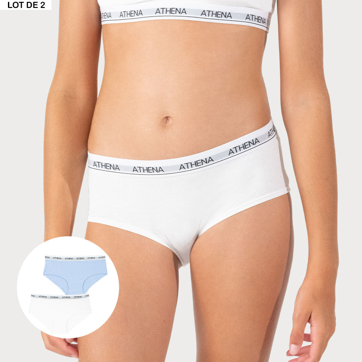Lot de 2 boxers blanc et bleu pastel pour fille